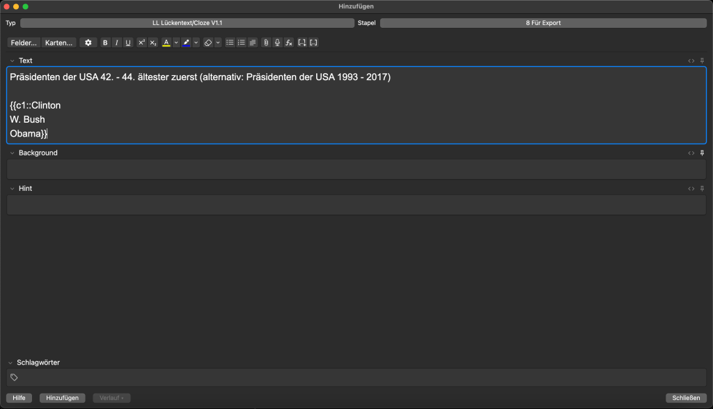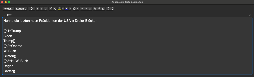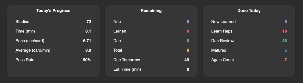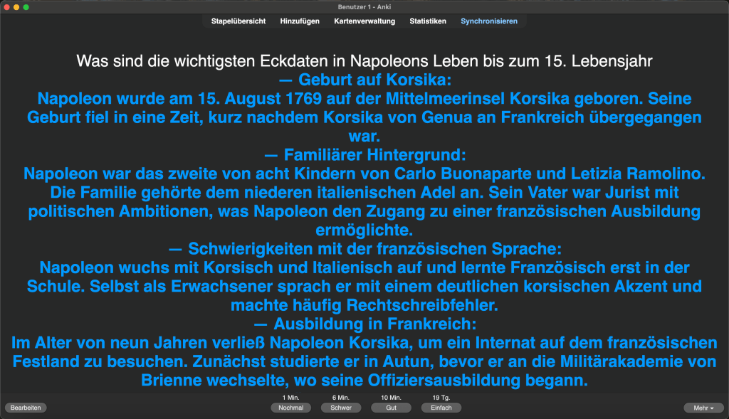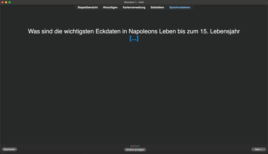 - statt „Lernen“ → „5 Karteikarten beantworten oder 1 Aufgabe Teil a“