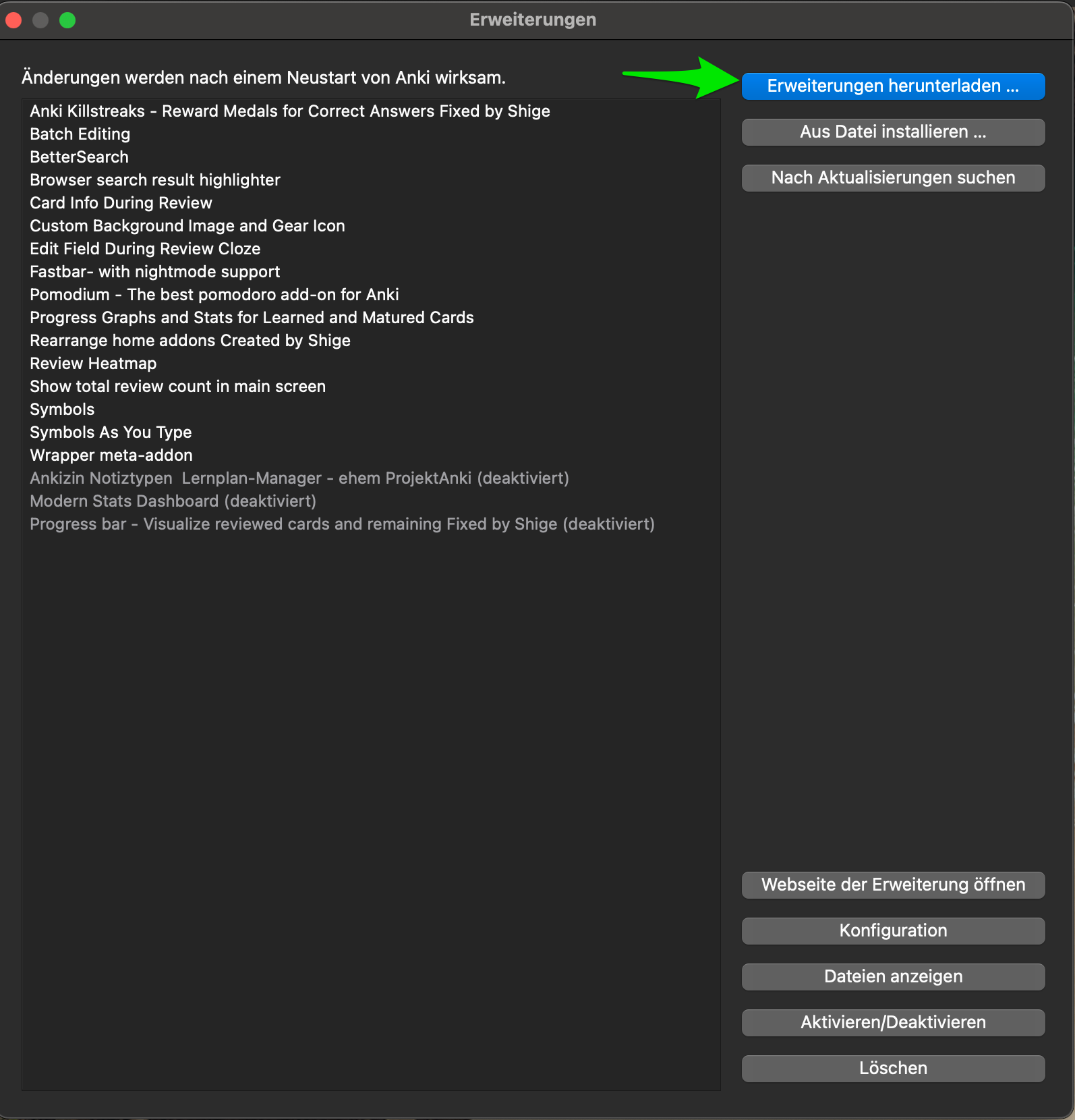 • Anki neu starten – erst dann wird das Add-on wirksam.