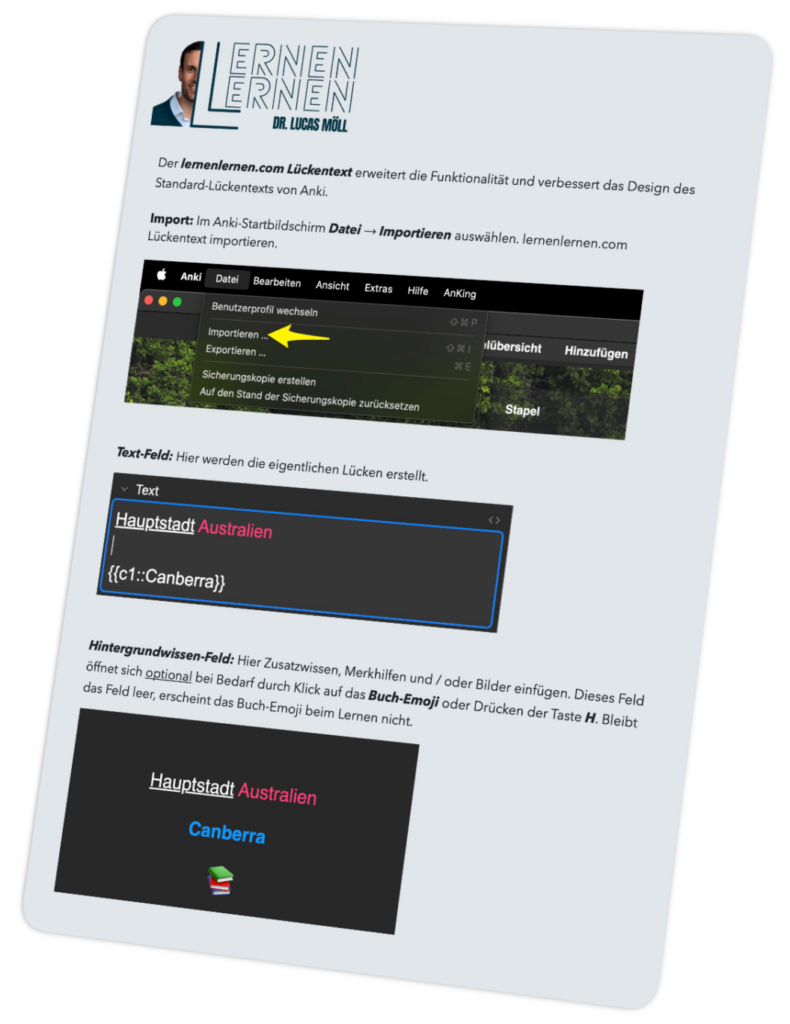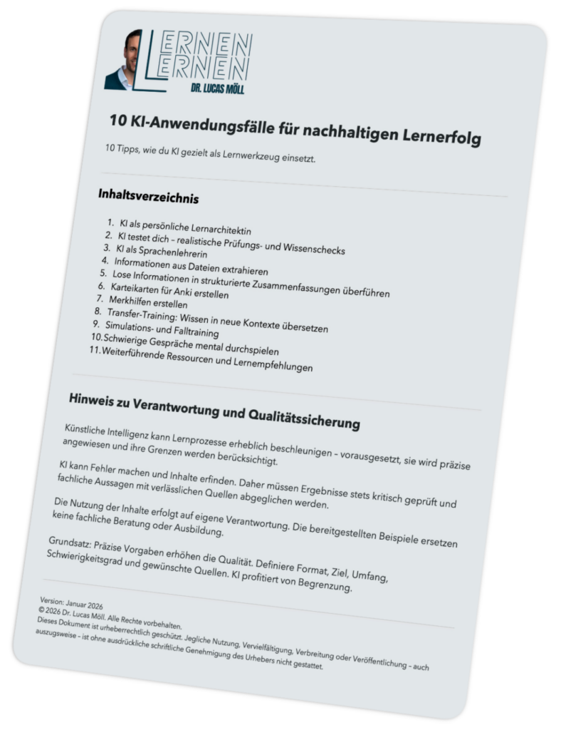 Ich bin Dr. Lucas Möll und von Kopf bis Fuß davon überzeugt, dass jeder mit den hier vorgestellten Techniken schneller und mehr lernen kann. Ohne auszubrennen oder die Freude zu verlieren 😊.